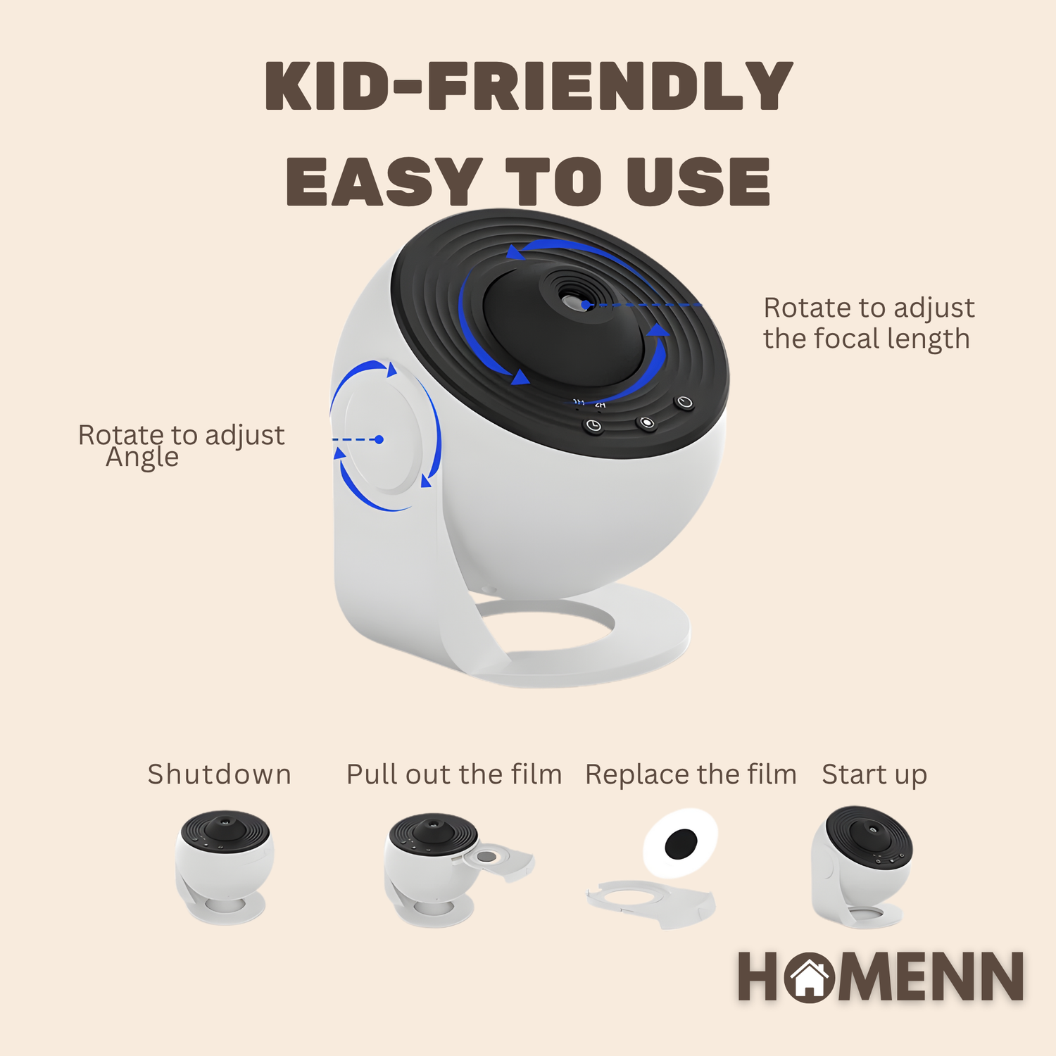 - Silent Operation – No motor noise; just calm, ambient starlight.