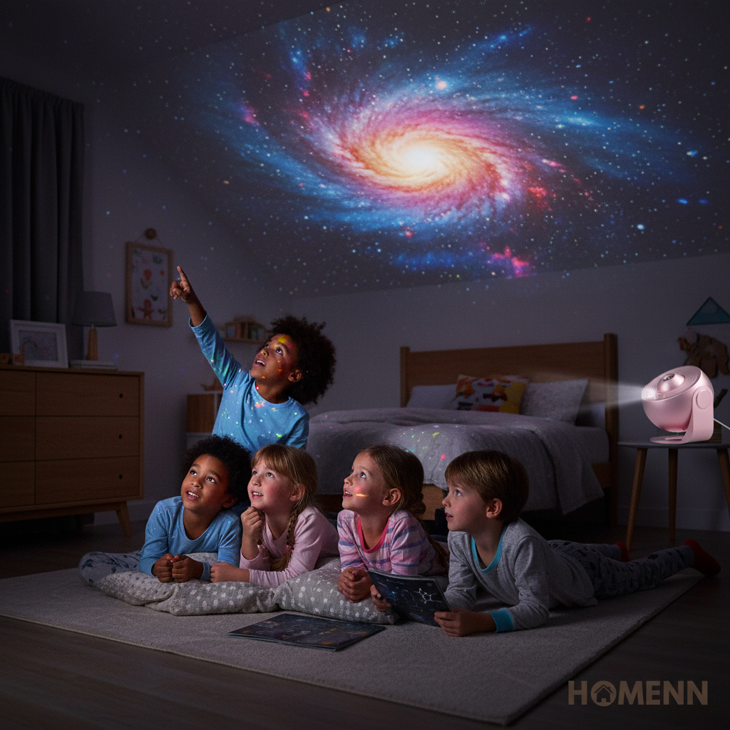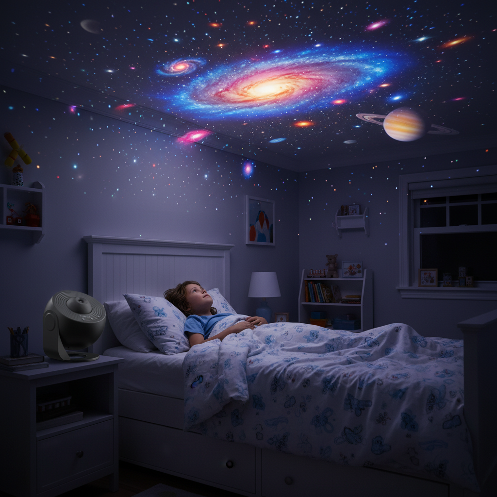 Turn bedtime into a magical adventure — watch galaxies, planets, and nebulae come alive on your ceiling.